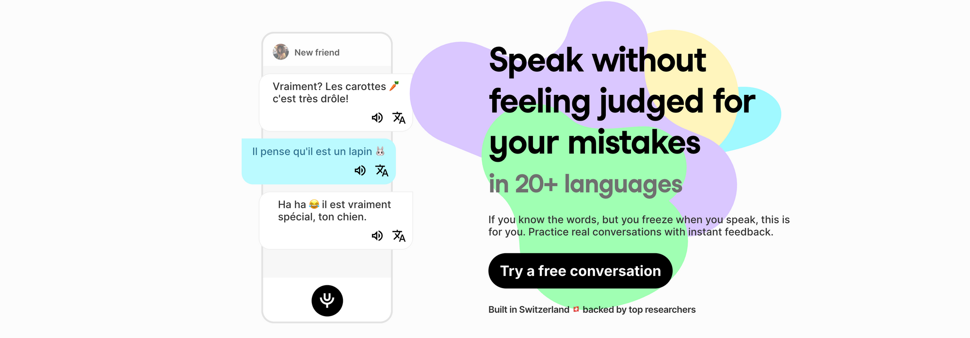 Univerbal is a Swiss AI language learning app (formerly called Quazel) that focuses on conversation practice through structured scenarios.